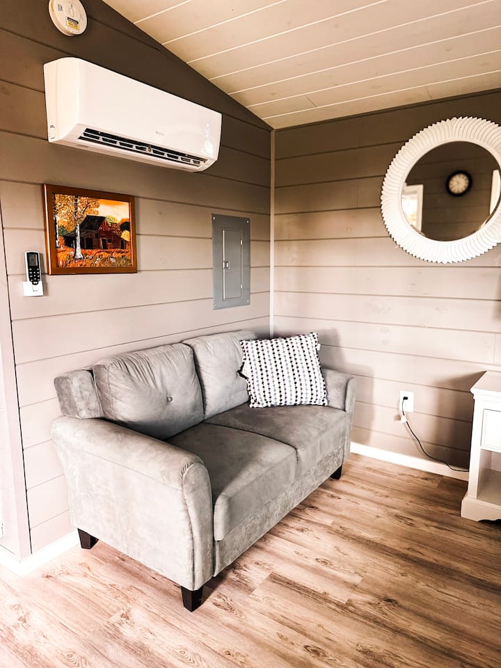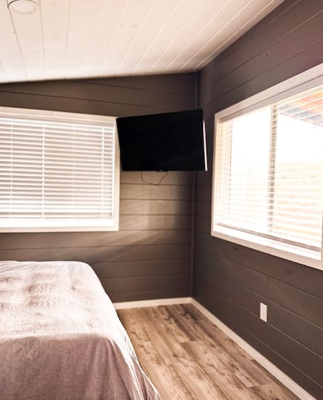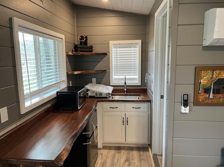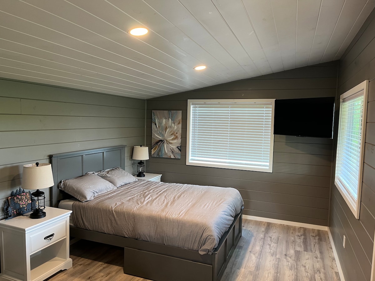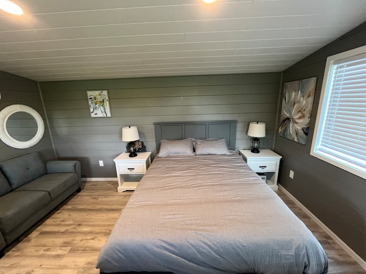 Take it easy at this unique and tranquil getaway. Brand new micro cabin located on a beautiful and private property. Enjoy the fire pit, walking trails, lake access, kayaking, canoeing, bird and nature watching. Also operate a small hobby farm here and guests can hang with the sheep.