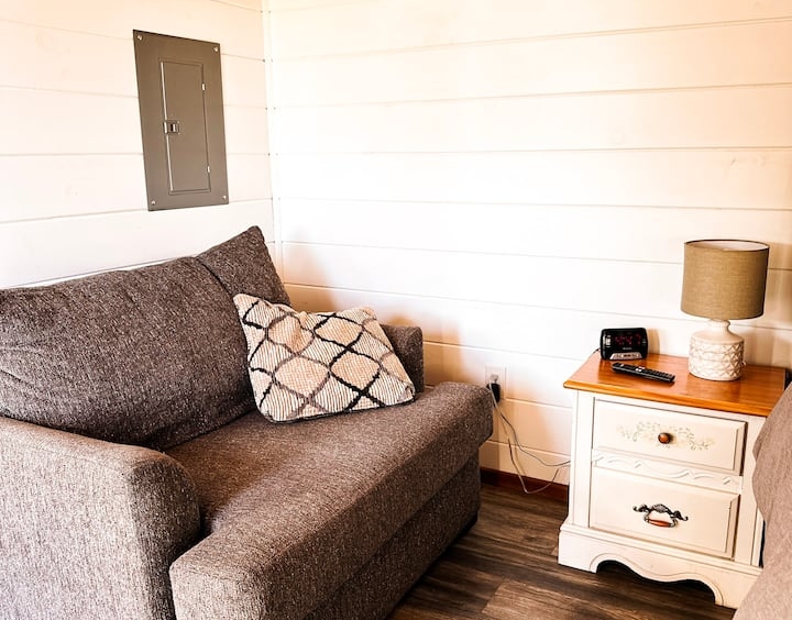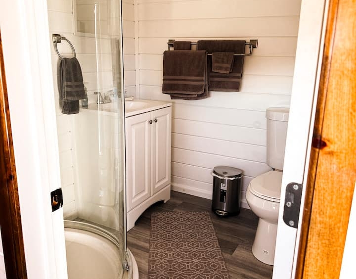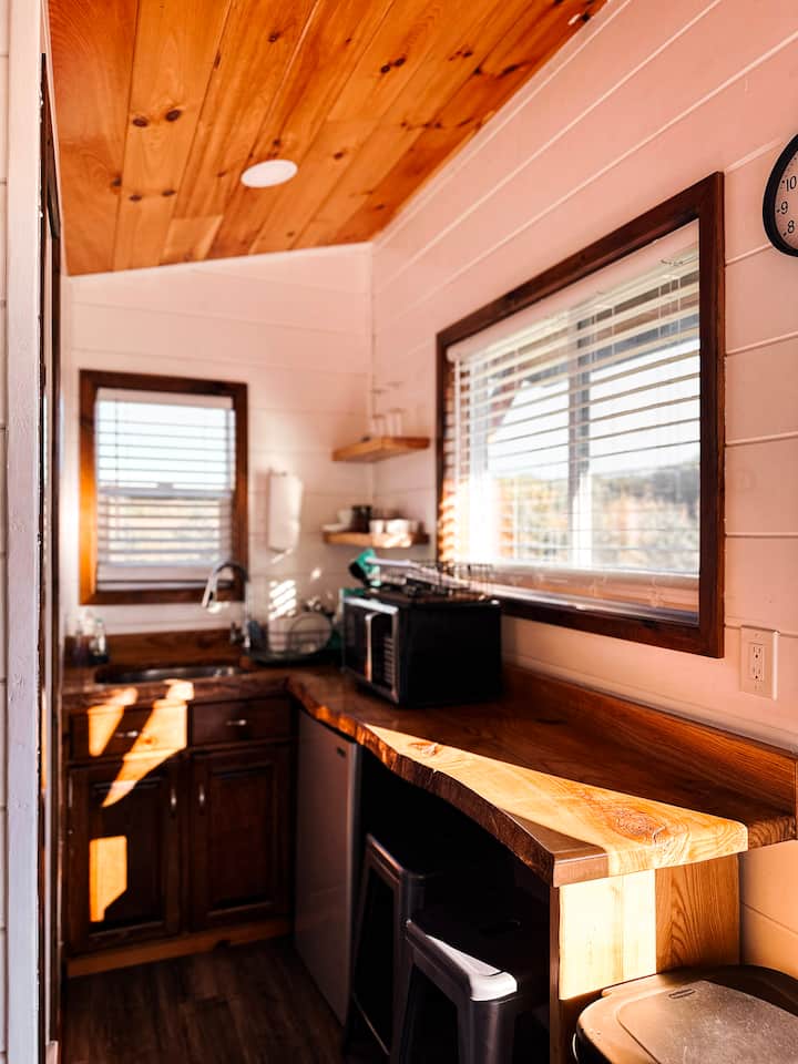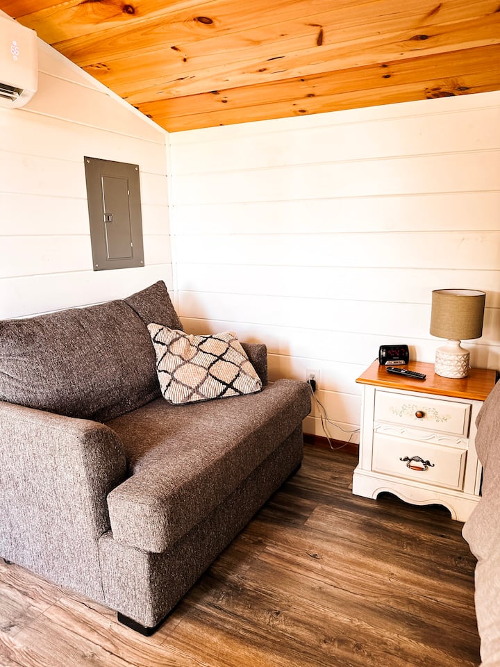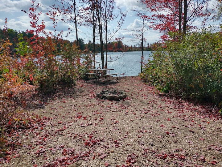 Queen bed, kitchenette, full bathroom, outdoor kitchen, fire pit, private deck and much more.