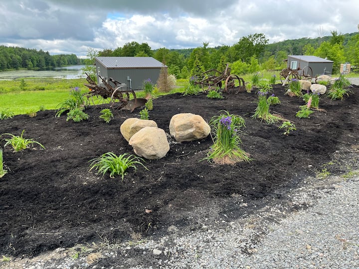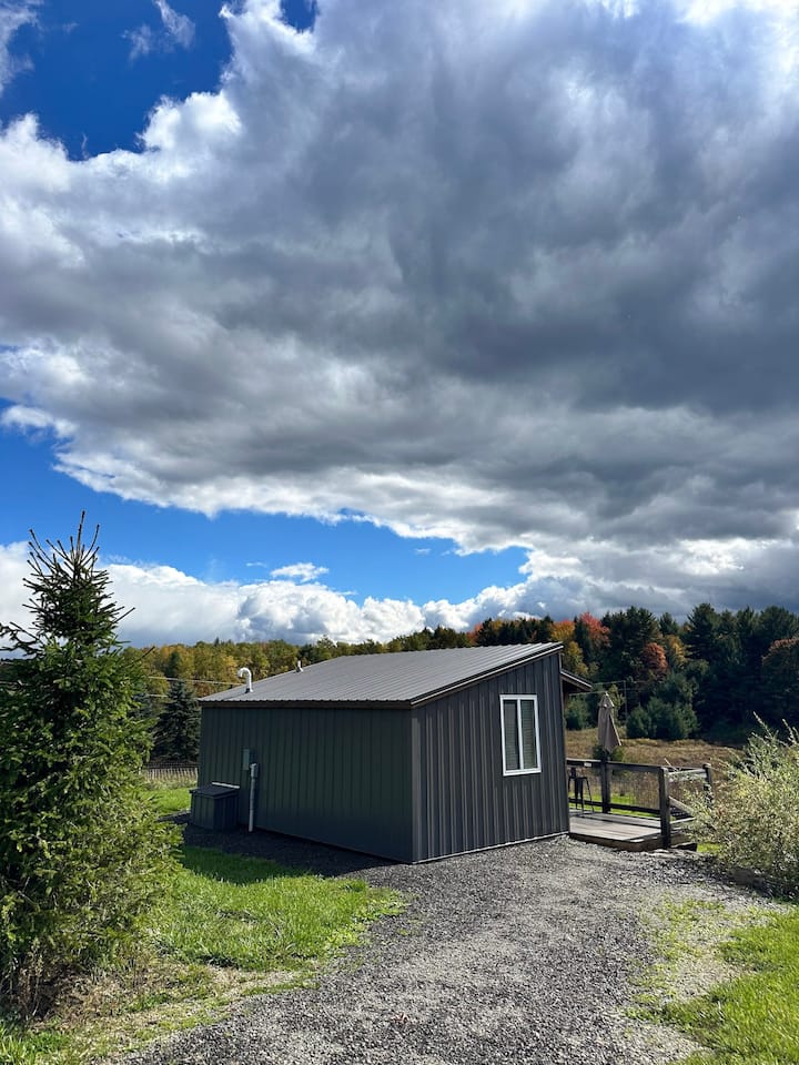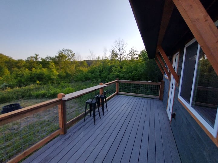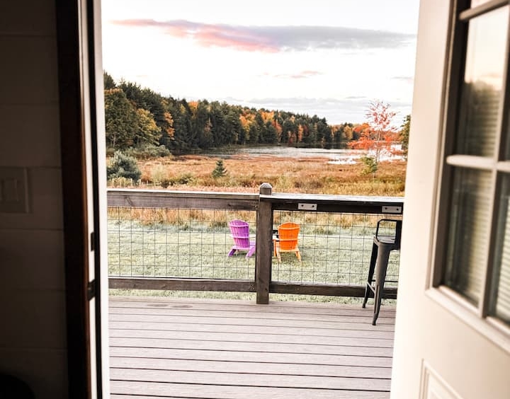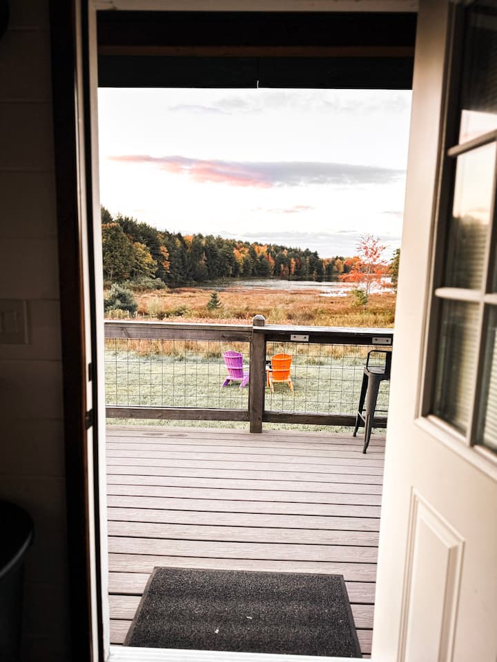 10 min from Watkins Glen! Reconnect with nature at this unforgettable escape. Newly built micro cabin with full bath and kitchenette. Overlooking the the marsh and small lake with a beautiful view of nature from every window. Very own deck with bar top railing, stone steps down to a private fire pit. Trails throughout the property and leading to several picnic table areas along the waters edge as well as a dock area for lake access. Kayak, canoe, hike, fish, swim , nature watch or just relax!